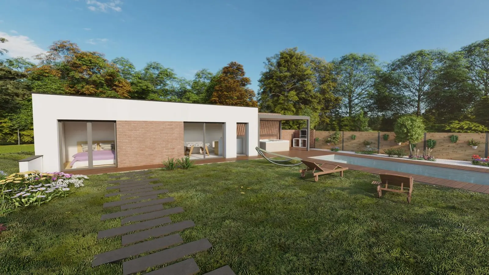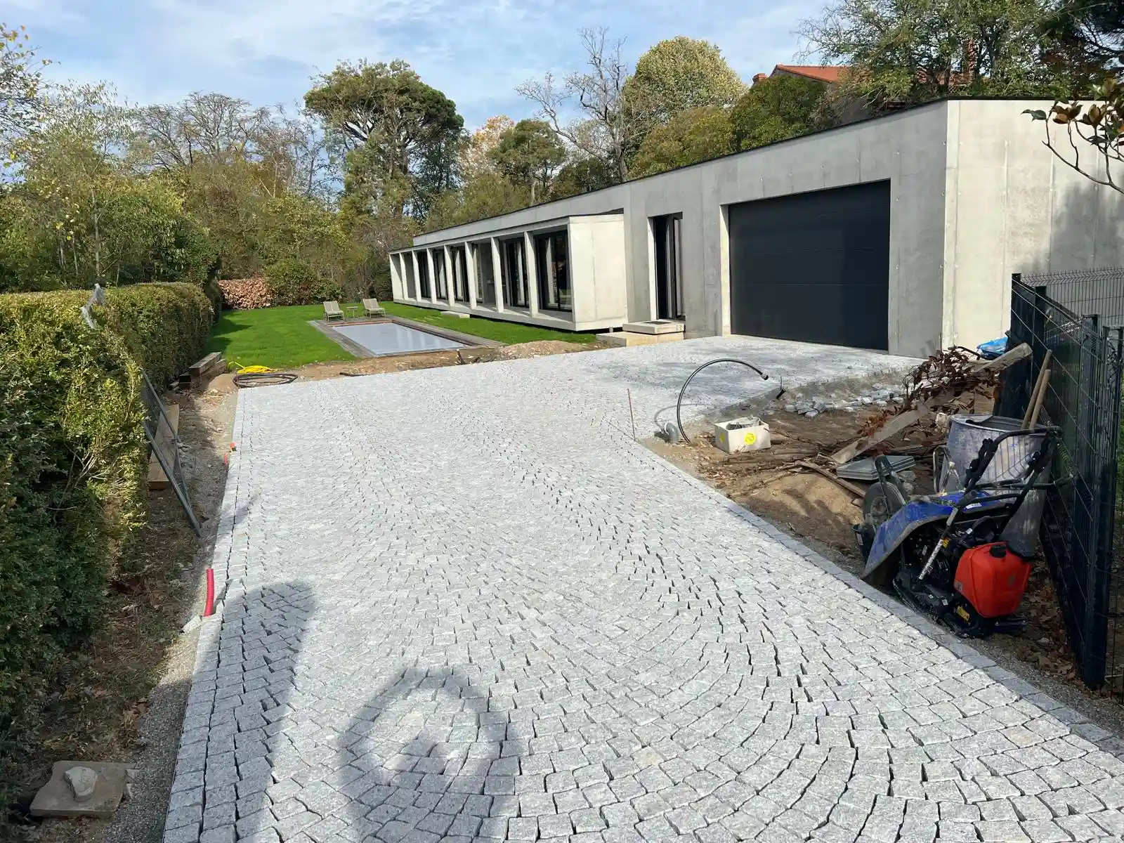 Conception d’aménagement extérieur, réalisation de projets menuiseries, portails, clôture, pergolas bioclimatique et sols pavés de granit.